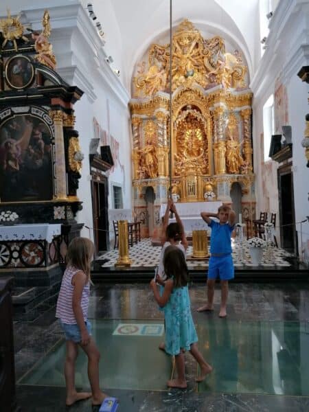 9. Zvonenje z zvončkom želja in ogled mehanizma delovanja ure in velikih zvonov v samostojnem zvoniku na otoku.