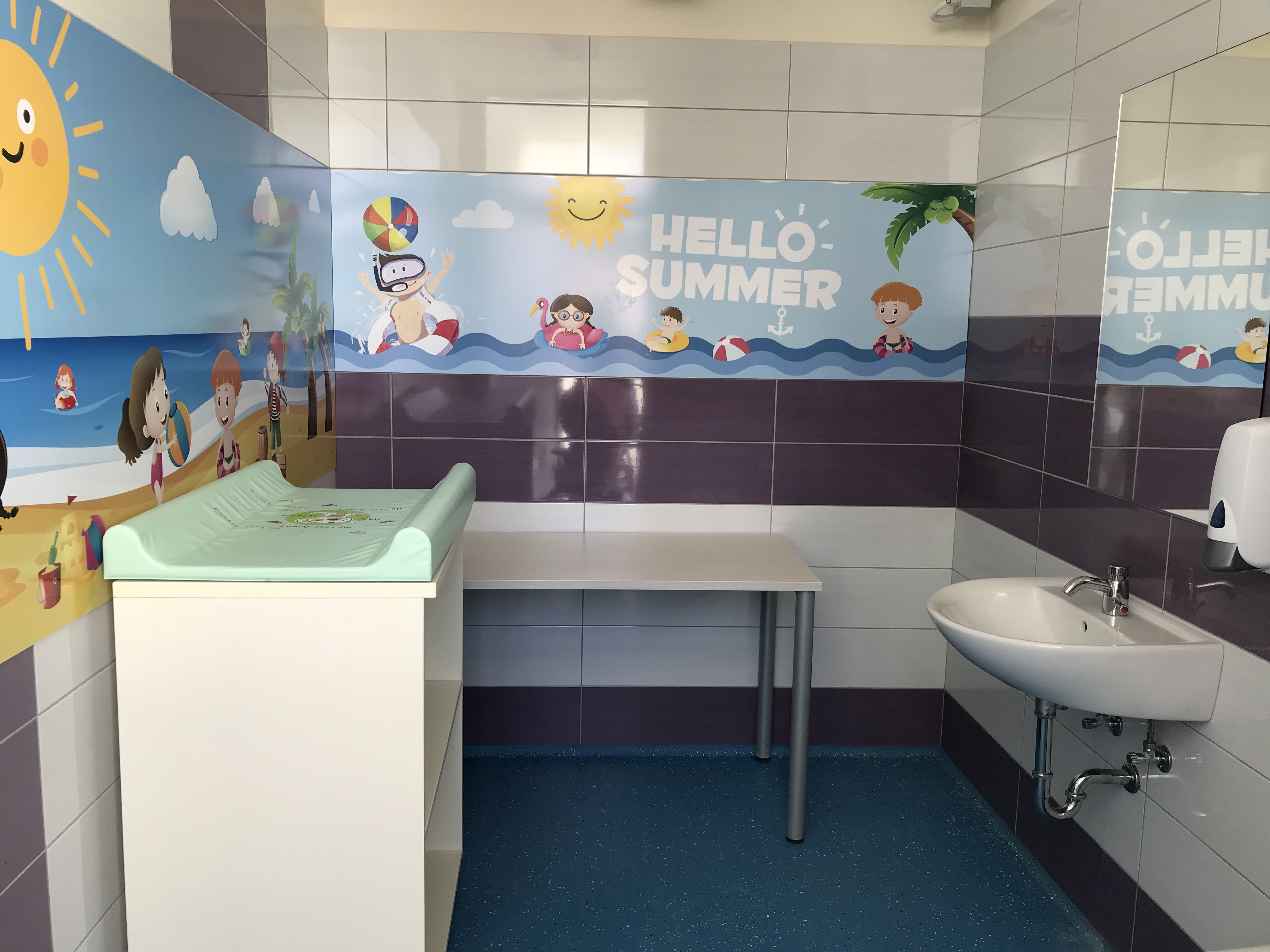 Previjalnica: Čista, prostorna previjalnica se nahaja pod otroškim bazenom.