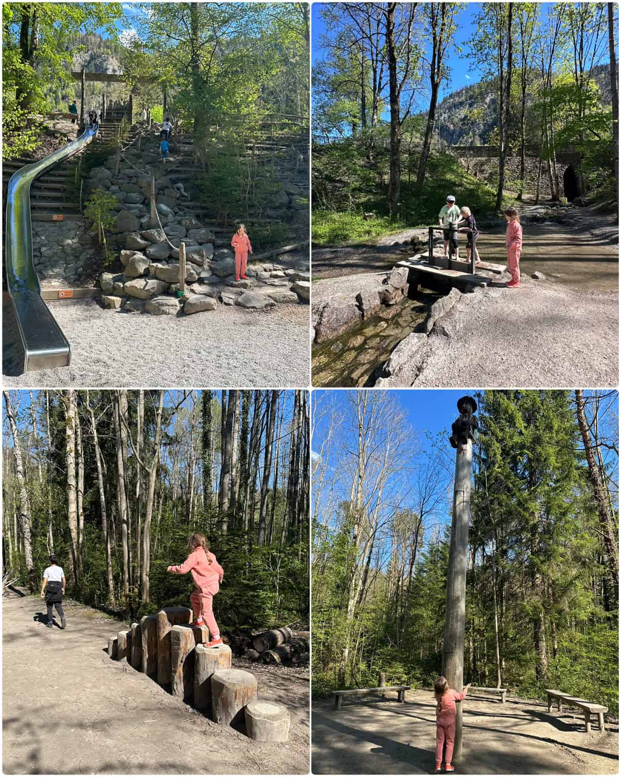 3. sprehod od slapu Lechfall, skozi lepo gozdno učno pot z lesenimi igrali “Auwald” ob reki, do Walderlebniszentrum Ziegelwies. Najprej bo otroke zamotilo igrišče z dolgim toboganom ter lesenimi igrali.