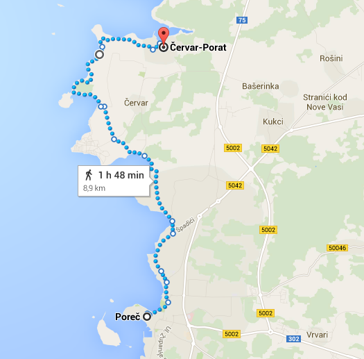 Pot vas vodi severno iz Poreča, proti Špadičem. Če boste ubrali pot ob morju, boste šli mimo zanimivih plaž in manjšega otroškega igrišča.