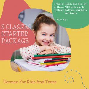2. En začetni paket zabavnih in super učnih ur nemščine za mulčke, kjer bodo spoznali, kako se predstaviti, barve in druge osnovne besede, ki ga podarjamo skupaj z German for Kids and Teens;