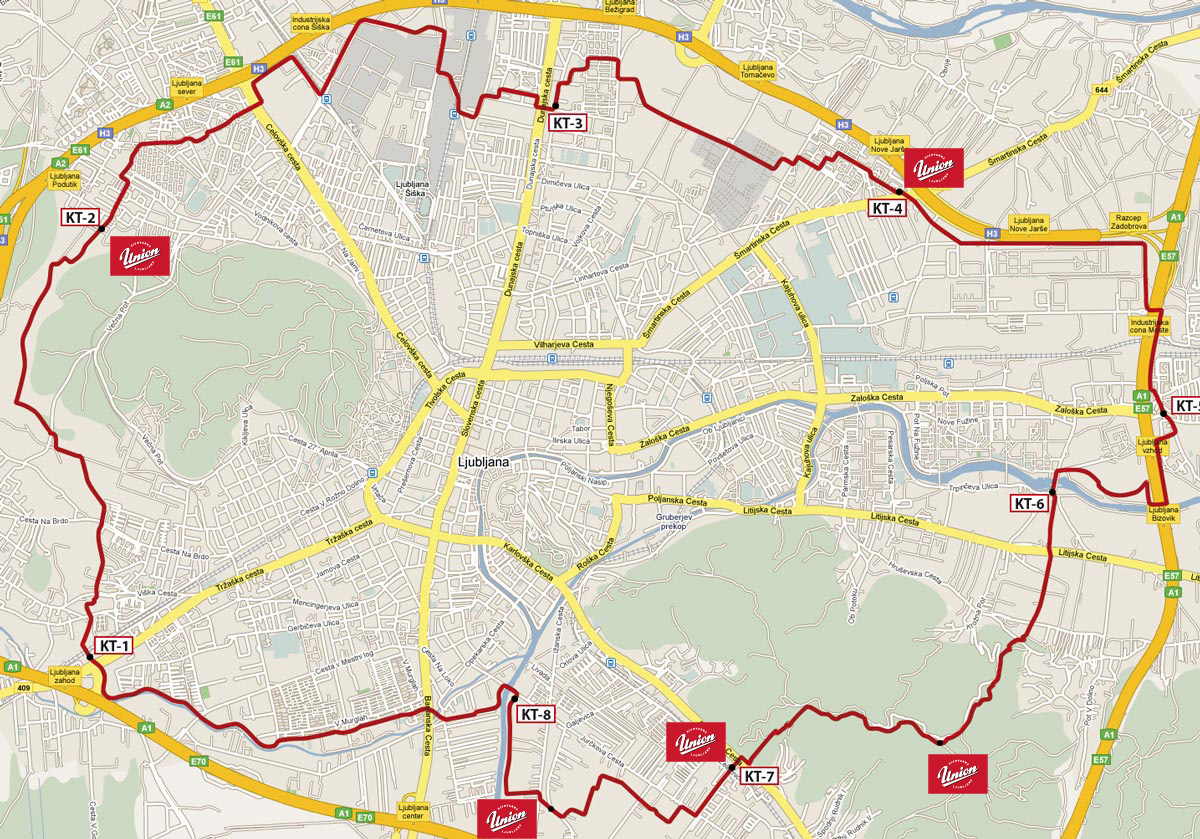 Žito Ljubljana, križišče Clevelandske in Šmartinske – Gramozna jama – Litostroj – Koseški bajer – Rožnik – Kongresni trg, - FUŽINE: smer jug 12.000 m